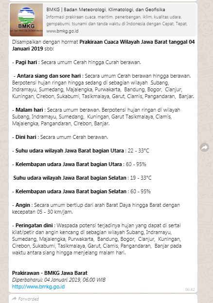 Contact bmkg jawa barat on messenger.